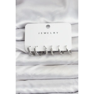 Gümüş Renk Pirinç Halka Kadın Küpe Seti