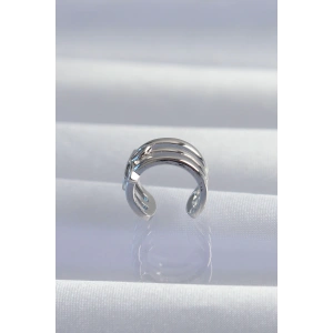 Pirinç Gümüş Renk Zirkon Taş Kaplama Earcuff Küpe