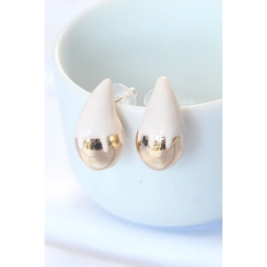 Minimal Beyaz Mineli Çift Renk Damla Küpe