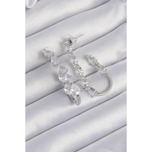 Pirinç Gümüş Renk Zirkon Taşlı Samanyolu Küpe