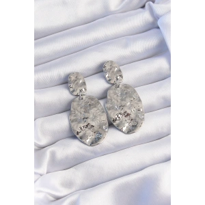 Pirinç Gümüş Renk Oval İşlemeli Küpe