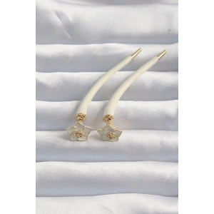 Pirinç Gümüş Renk Sarmal Çubuk Tasarımlı Uzun Küpe