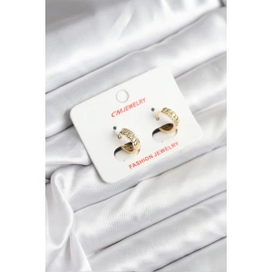 14K Gold Renk Kaplama Yarım Halka Zirkon Taşlı CM Kadın Küpe