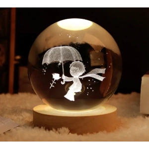 Dekoratif Küçük Prens Tasarımlı Ahşap Altlıklı Işıklı Cam Küre Büyük Boy Cam:8cm Ahşap:2cm