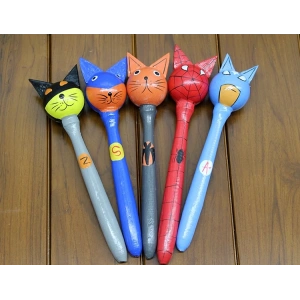 Ahşap Kedili Batman Marakas Tekli Polos:25