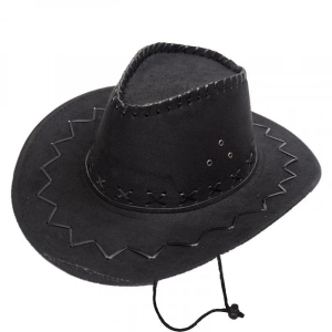 Bağcıklı Çocuk Boy Nubuk Süet Kovboy Şapkası Siyah Renk