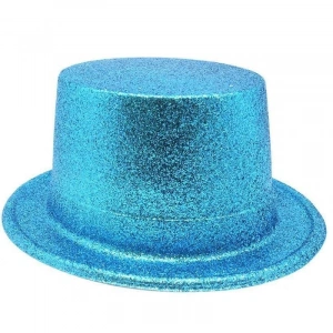 Floresan Mavi Renk Simli Uzun Fötr Melon Şapka 12 Cm
