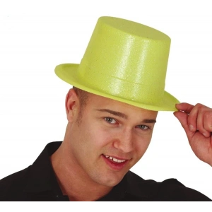 Floresan Sarı Renk Simli Uzun Fötr Melon Şapka 12 Cm
