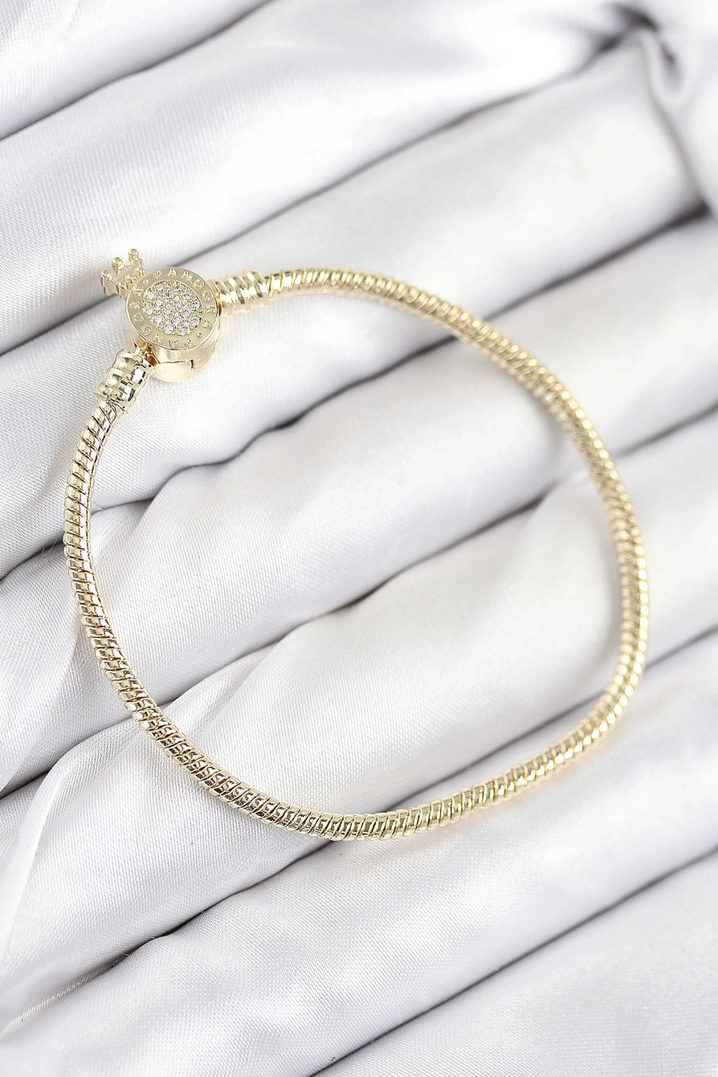 Pirinç Charm Zirkon Taşlı Taç Model Gold Renk Kadın Bileklik