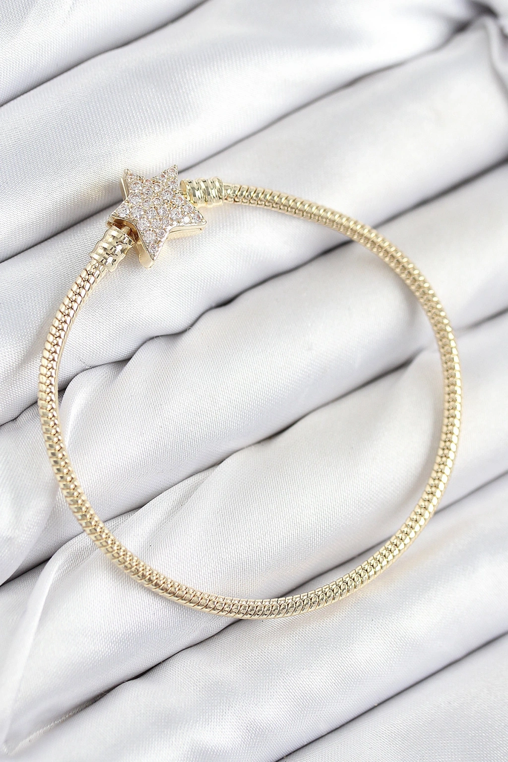 Pirinç Charm Zirkon Taşlı Yıldız Model Gold Renk Kadın Bileklik