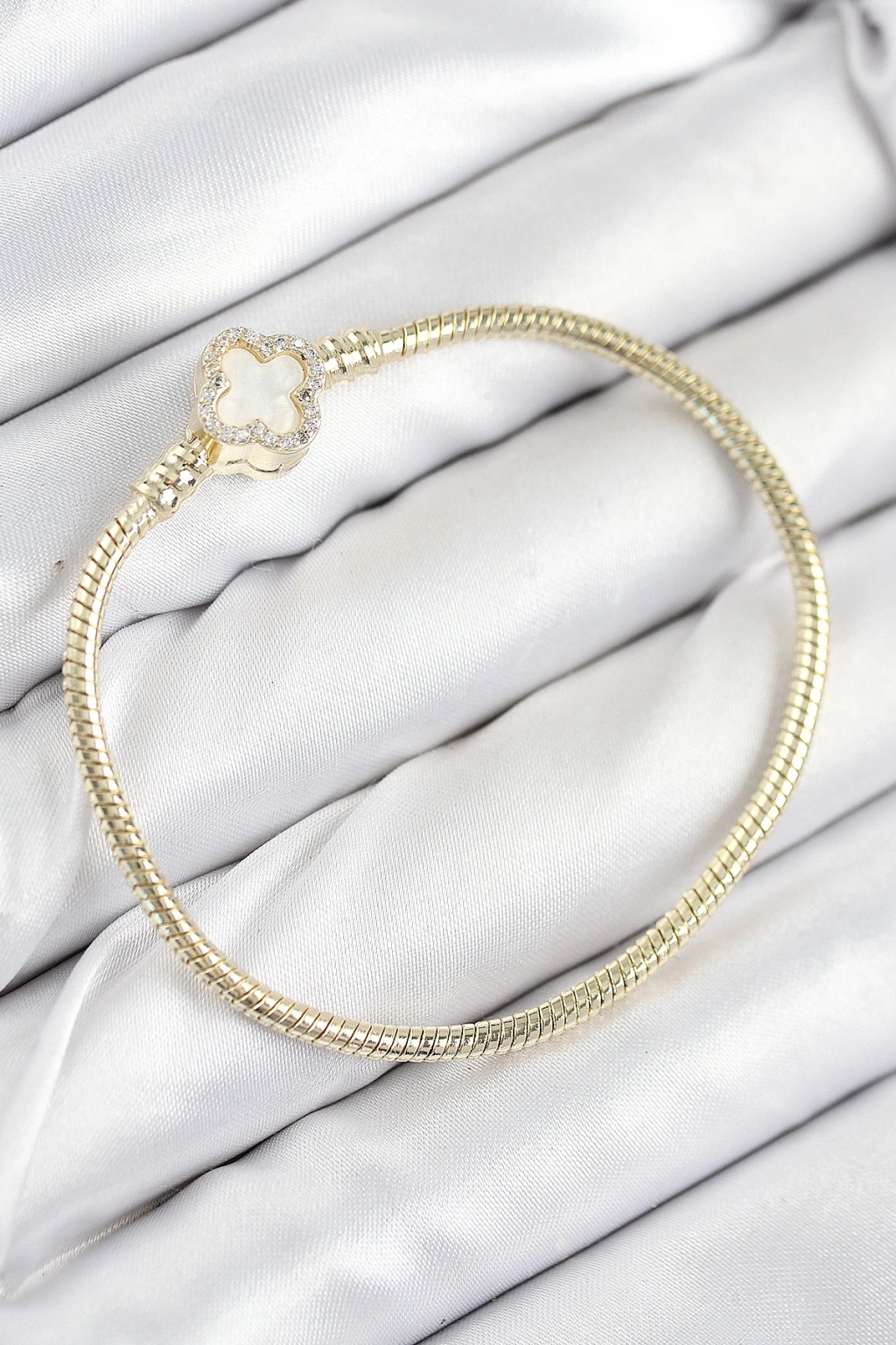 Pirinç Charm Zirkon Taşlı Yonca Model Gold Renk Kadın Bileklik