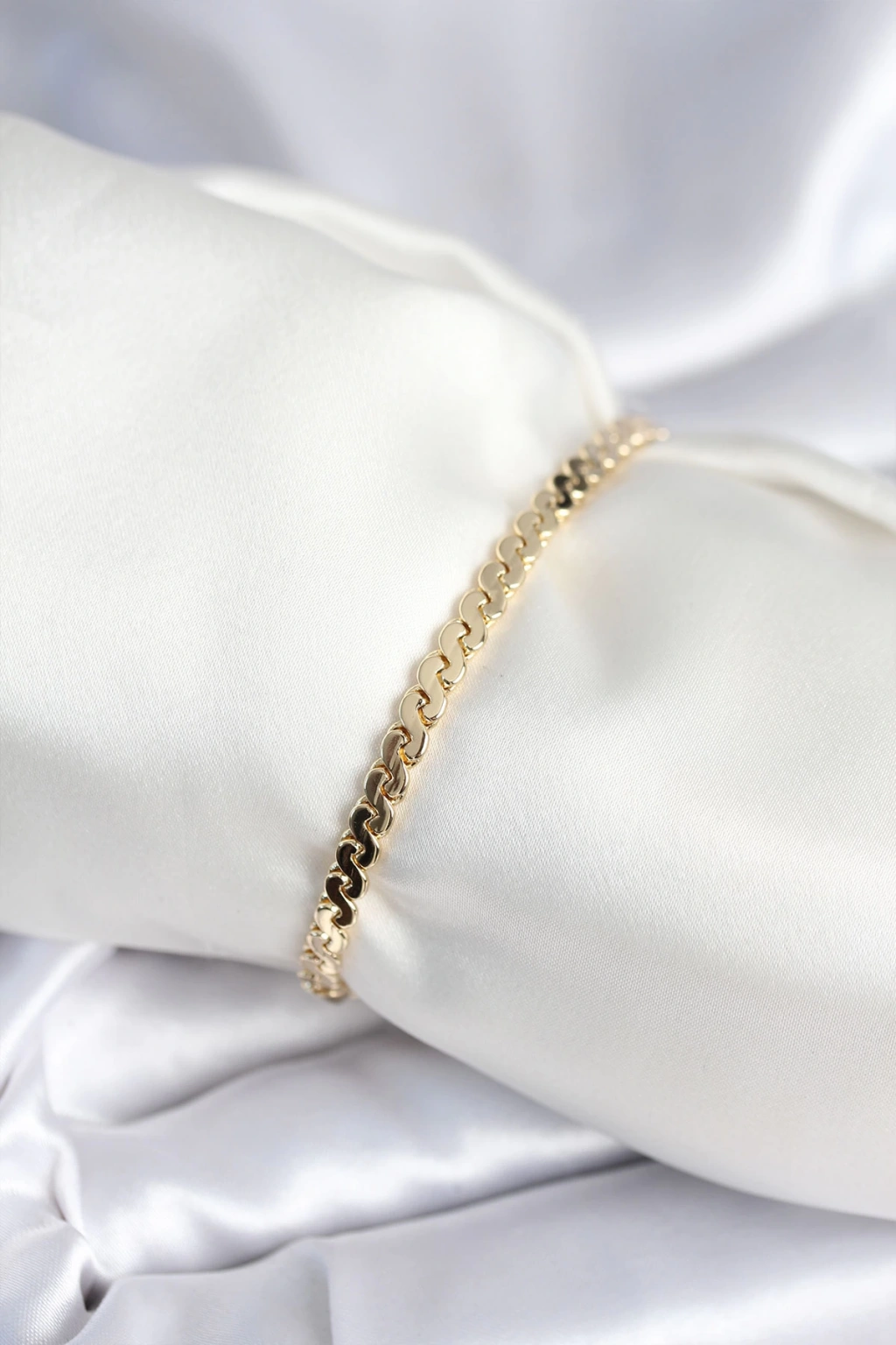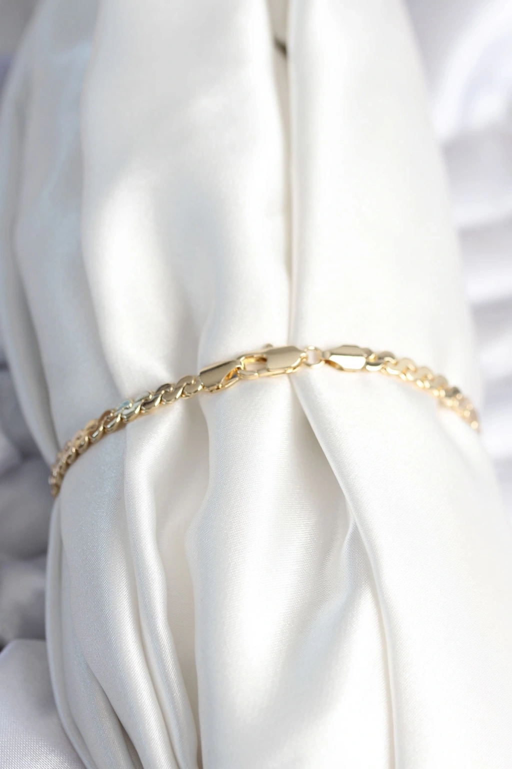 Pirinç Gold Renk Yassı Zincir Model Kadın Bileklik