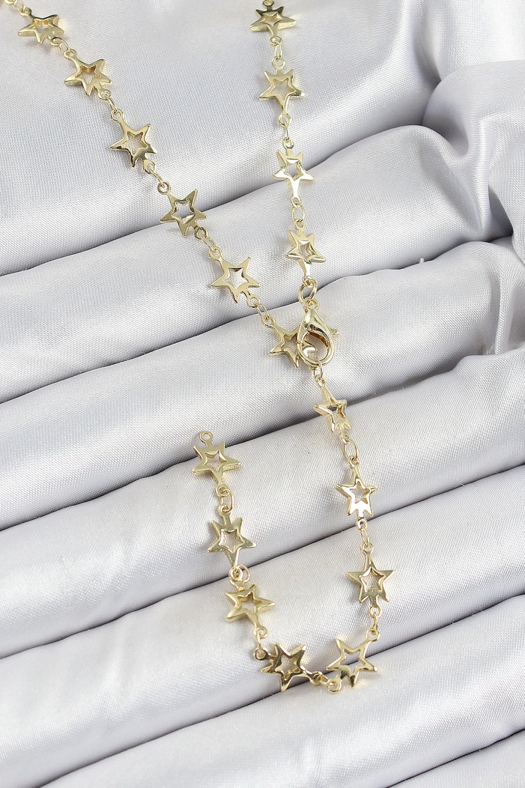 Pirinç Gold Renk Yıldızlı Kadın Y Kolye
