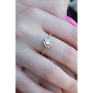 Pirinç Gold Renk Zirkon Taşlı Çiçek Model Kalp Detay Kadın Yüzük
