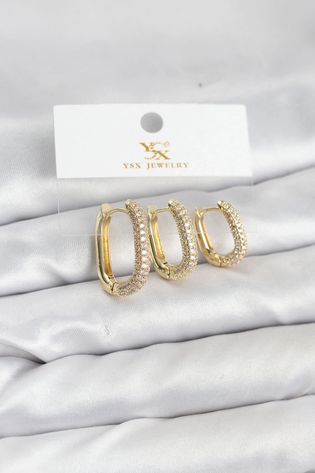 Pirinç Gold Renk Zirkon Taşlı Halka Model YSX Trio Küpe Seti