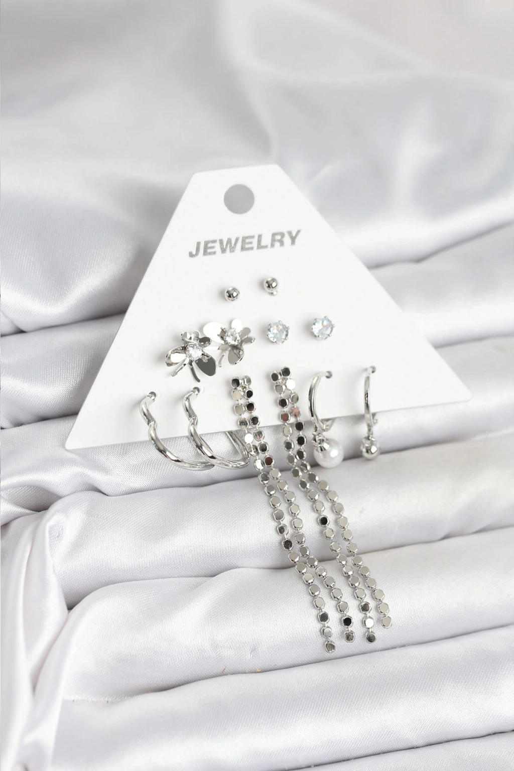 Pirinç Gümüş Renk 6 Çift Kadın Küpe