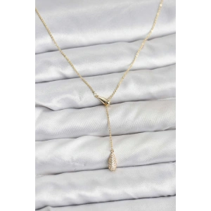 Pirinç Gümüş Renk Karışık Renk Zirkon Taşlı Kalpli Y Kadın Kolye