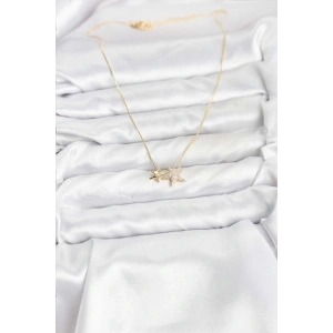 Pirinç Zirkon Taşlı Yıldız Figürlü Y Model Gold Renk Kadın Kolye