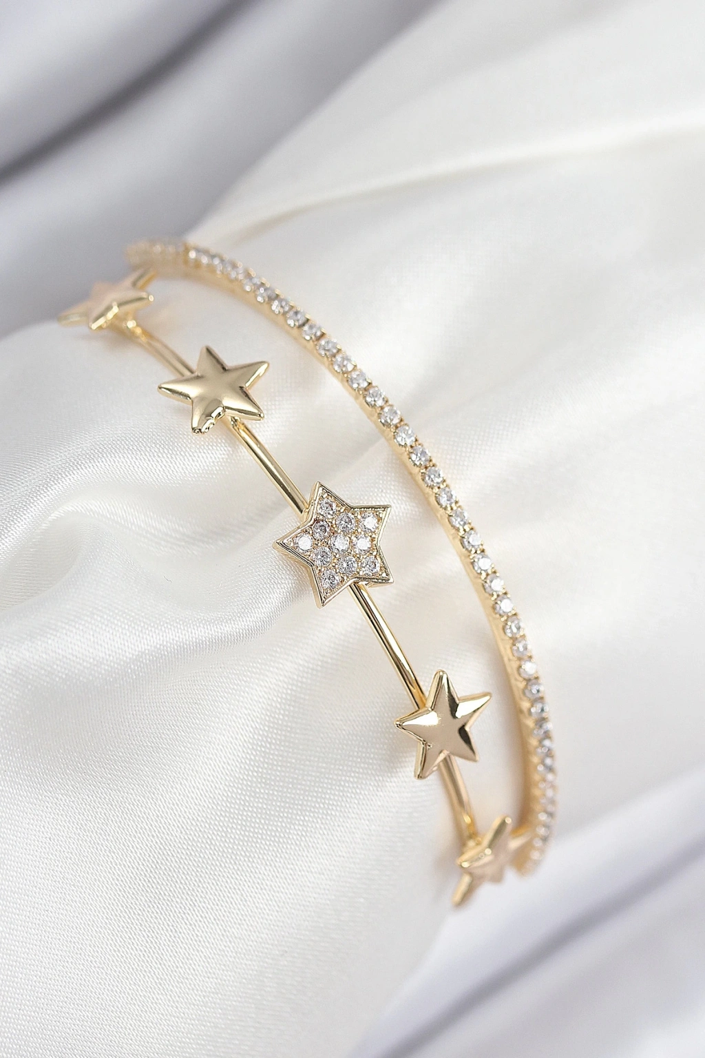 Pirinç Zirkon Taşlı Yıldız Model Gold Renk Kadın Bileklik