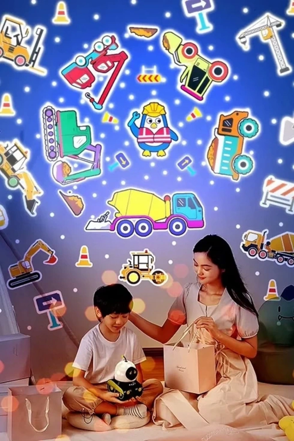 ÇOCUKLAR İÇİN EĞİTİCİ VE EĞLENCELİ ROBOT TEMALİ PROJEKTÖR GECE LAMBASI 12 FİLMLİ