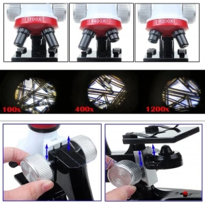 Eğitici Mikroskop Kiti Zoom Led Işıklı 100x 400x 1200x St1200x