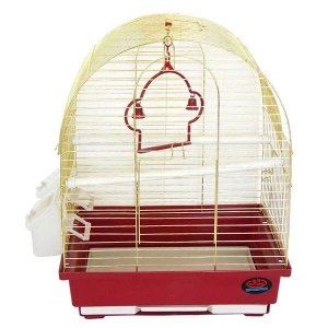 Dayang İki Kapılı Davul Muhabbet Kuş Kafesi Kırmızı/Sarı 30x23x39 Cm