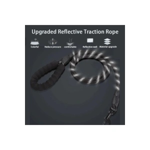 Köpekler İçin Gezdirme Tasması Reflektörlü 130 Cm Halat Orta Ve Büyük Boy Köpekler İçin Siyah