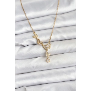 316L Çelik Zincir Gold Renk Kelebek Model Kadın Kolye