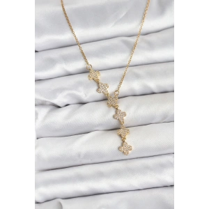 316L Çelik Zincir Gold Renk Yonca Model Kadın Kolye