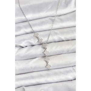316L Çelik Zincir Gümüş Renk Yonca Model Kadın Kolye