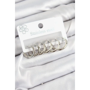 316L Çelik Halka Model Gümüş Renk 3'lü Set Kadın Küpe