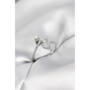 Balık Kuyruğu Model Gümüş Renk Zirkon Taşlı Kadın Yüzük