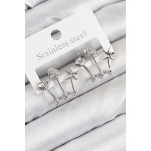 Pirinç Zirkon Taşlı Deniz Yıldızı ve İstiridye Model Gümüş Renk Kadın Küpe
