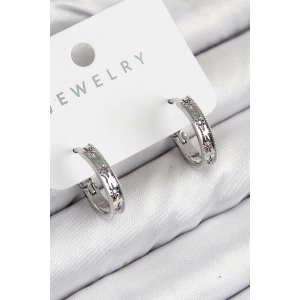 Pirinç Zirkon Taş Desenli Model Gümüş Renk Kadın Küpe