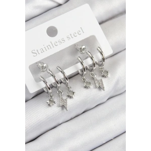 Pirinç Sallantılı Zirkon Taşlı Model Gümüş Renk Kadın Küpe