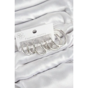Pirinç Halka Model Gümüş Renk Kadın Set Küpe
