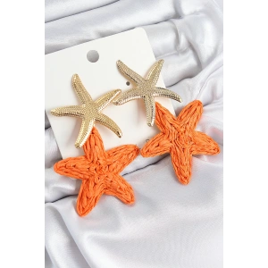 Pirinç Sallantılı Turuncu Deniz Yıldızı Model Gold Renk Hasır Küpe
