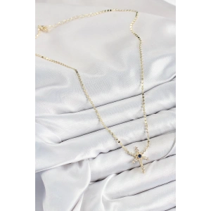 Pirinç Zirkon Taşlı Kutup Yıldızı Model Ezme Zincir Gold Renk Kadın Kolye