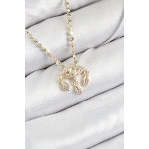 Pirinç Zirkon Taşlı Sallantılı Göz Model Ezme Zincir Gold Renk Kadın Kolye