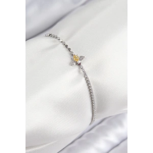 Pirinç Zirkon Taşlı Arı Model Ezme Zincir Gümüş Renk Kadın Bileklik