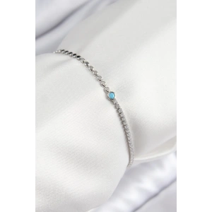 Pirinç Zirkon Taşlı Mavi Boncuklu Model Gümüş Renk Kadın Bileklik