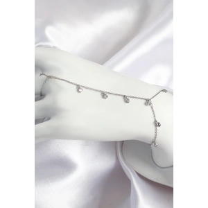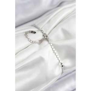 Pirinç Zirkon Taşlı Damla Model Ezme Zincir Gümüş Renk Kadın Bileklik