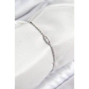 Pirinç Zirkon Taşlı Dikdörtgen Model Ezme Zincir Gümüş Renk Kadın Bileklik
