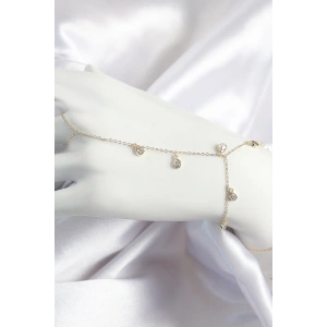 Pirinç Zirkon Taşlı Damla Model Ezme Zincir Gold Renk Kadın Bileklik