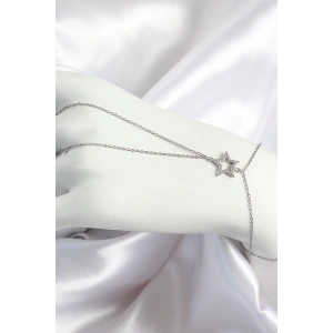 Pirinç Zirkon Taşlı Yıldız Model Gümüş Renk Kadın Şahmeran