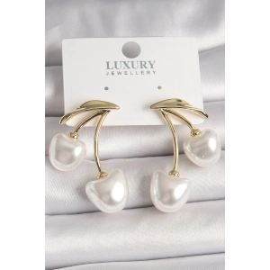 Pirinç Gold Renk Beyaz İnci Kiraz Model Kadın Küpe