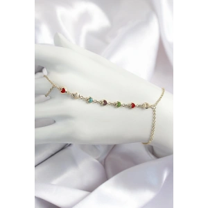 Pirinç Renkli Kalpli Zirkon Taşlı Y Model Gold Renk Kadın Şahmeran