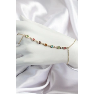 Pirinç Renkli Zirkon Taşlı Y Model Gold Renk Kadın Şahmeran