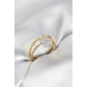 Gold Renk Karışık Renk Zirkon Taşlı Kadın Yüzük