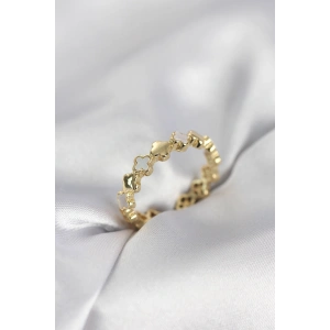 Gold Renk Sedefli Yonca Model Kadın Yüzük